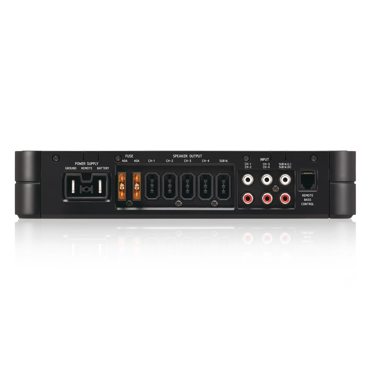| Bemeneti érzékenység (RCA bemenet) | 0.2 - 4V (CH1/2, CH3/4), 0.1 - 4V (Subwoofer) |