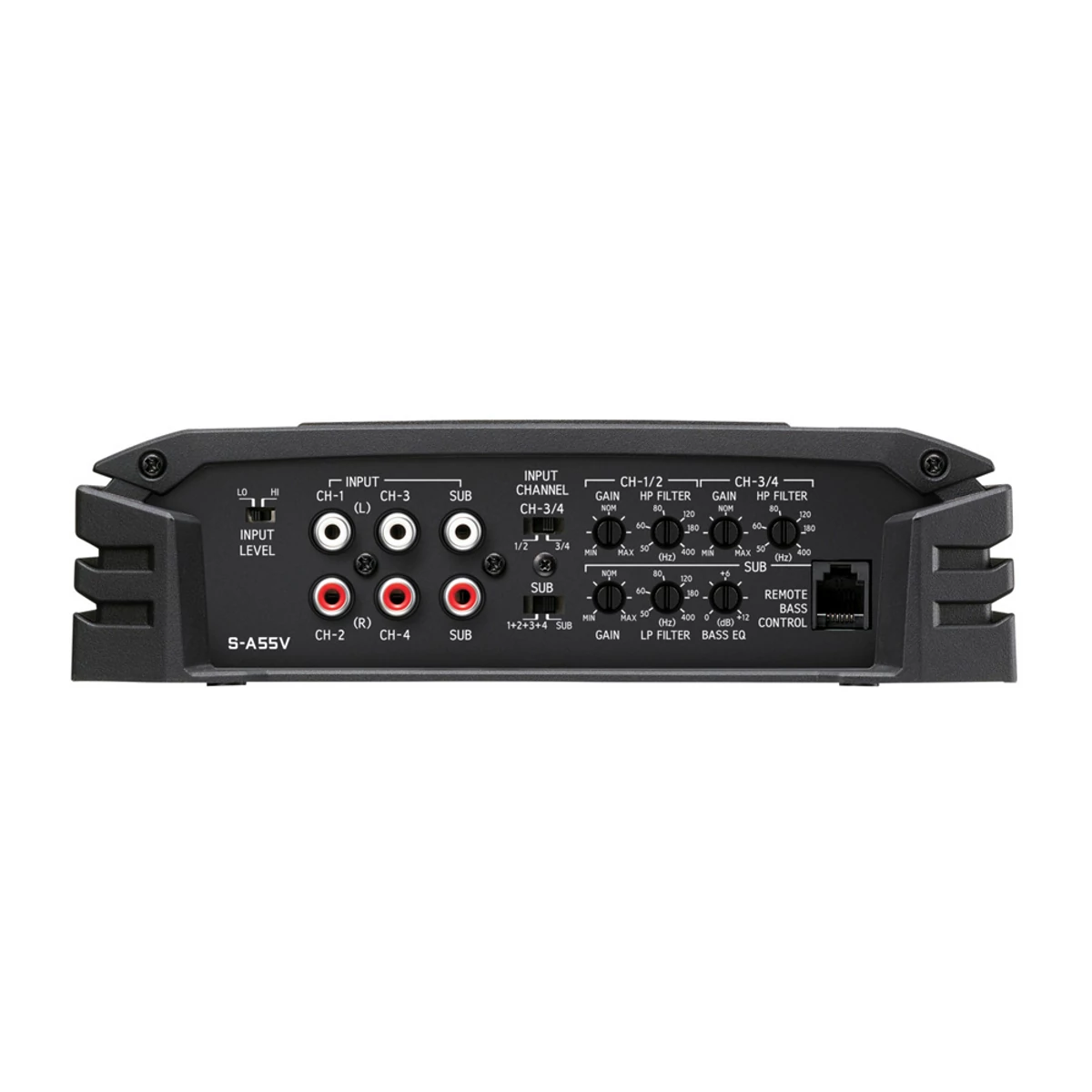 Az 5 csatornás RCA hangszóró jelbemenetei alacsony és nagy teljesítményű jeleket fogadnak. Ez megkönnyíti az S-A55V közvetlen csatlakoztatását az eredeti autórádiójához, függetlenül a fejegység teljesítményétől (a nyitott kábelvezetékekkel rendelkező RCA csatlakozók külön kaphatók).