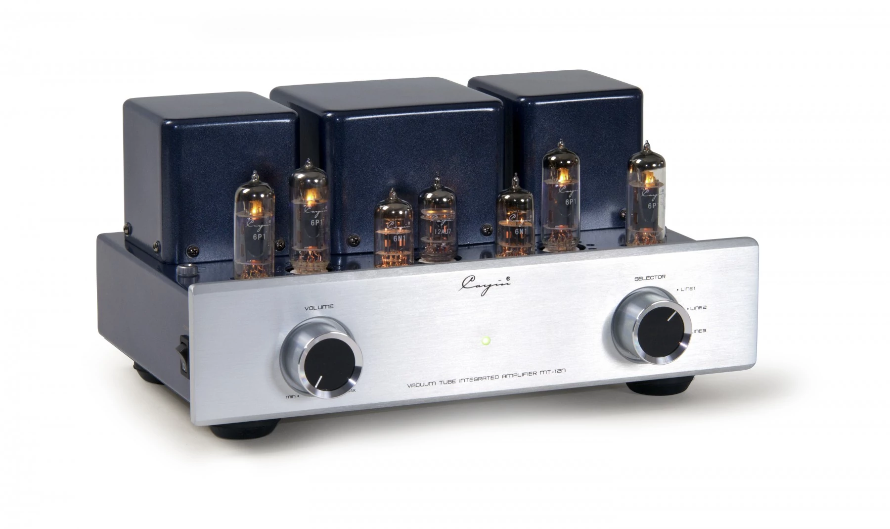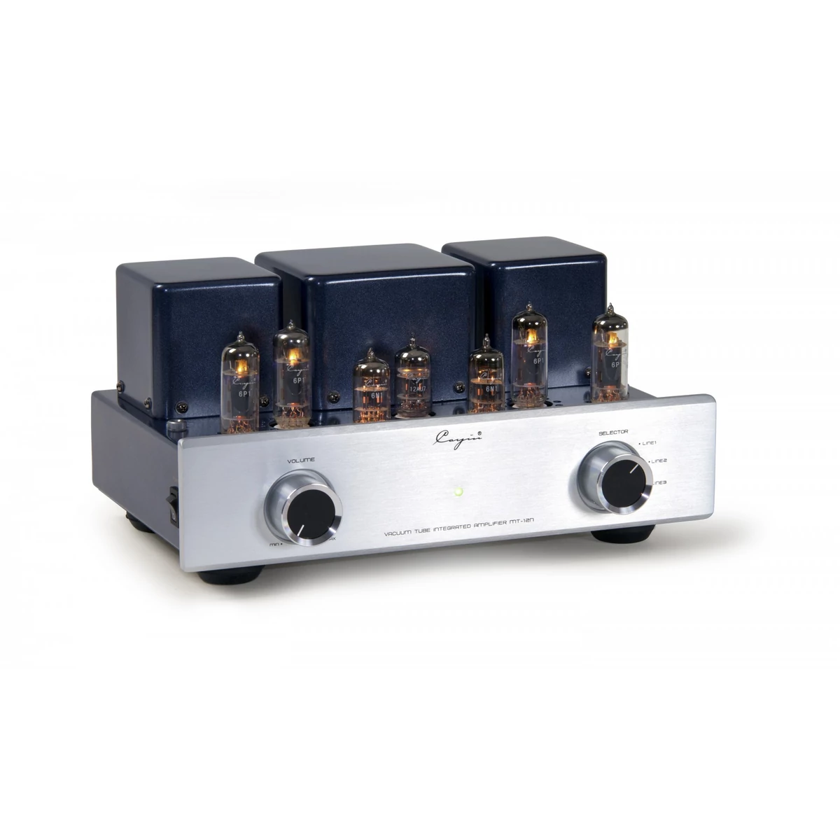 A ház három tokozott transzformátorral nemes antracit festéssel ragyog. Az MT-12N lenyűgöző finom felbontást és nagyszerű hangképet ad, különösen 8 ohmos hangsugárzók számára, nagy hatékonysággal. Az A / B osztályú áramkört 1db 12AX7, 2db 6N1 és 4db 6P1 csővel építették med. A csatlakozási felületen a Cayin MT-12N különálló aljzatokat kínál a 4- és 8 ohmos hangszórók számára, valamint három vonalbemenetet.