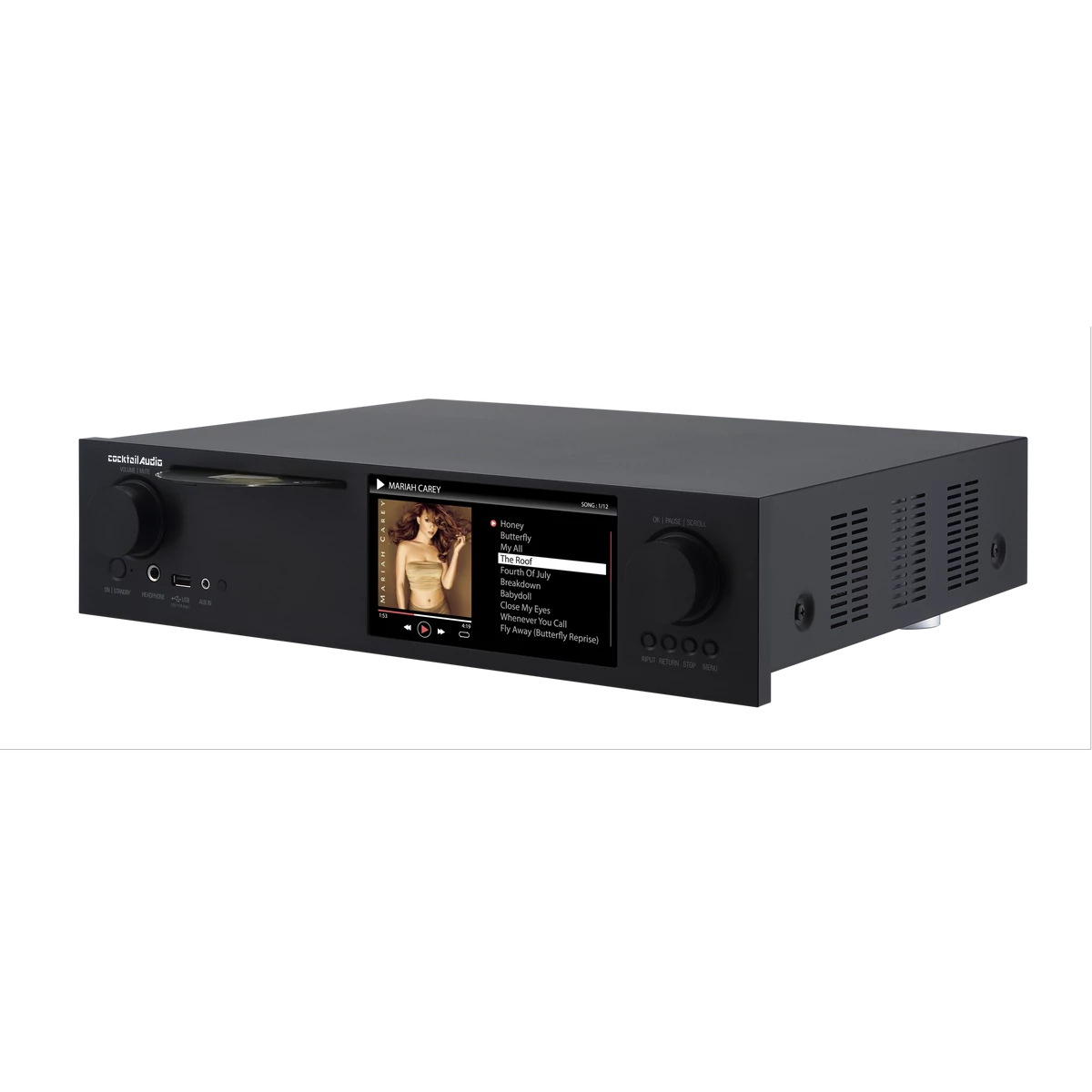 A 7 colos nagy képernyőn az intuitív grafikus kezelőfelület segítségével egyszerűen vezérelheted az X35-t, csatlakoztathatod a TV-hez egy külső képernyőhöz, hogy nagyobb grafikus felhasználói felületet vagy fotókat nézhess, miközben zenei gyűjteményedet hallgatod