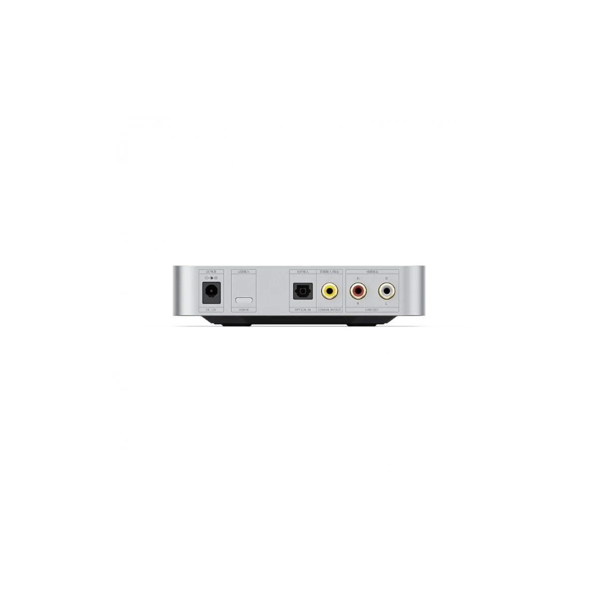 A K11 R2R hátlapján a tápegység csatlakozója mellett USB, optikai és koaxiális bemeneteket, valamint sztereó RCA kimenetet találsz. A koaxiális csatlakozó digitális kimenetként is használható, amikor a bemeneti jel az USB csatlakozón keresztül érkezik a K11-be.
