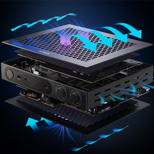 A FIIO termékben először a K19 nagyfelbontású, digitális jelfeldolgozó központként nagy teljesítményű, négymagos FPGA-t használ. Az FPGA felelős az összes bejövő digitális jel kezeléséért, amely magában foglalja a Bluetooth vételt és dekódolást, az USB dekódolást, a koaxiális és optikai dekódolást, a HDMI/ARC dekódolást és a DSP digitális jelfeldolgozást. Ezek a digitális jeleket két I2S csatorna készleten keresztül továbbítják a kettős ES9039SPRO DAC-hoz, minimális torzítást és audiojelveszteséget biztosítva a digitális hangfeldolgozási láncban.