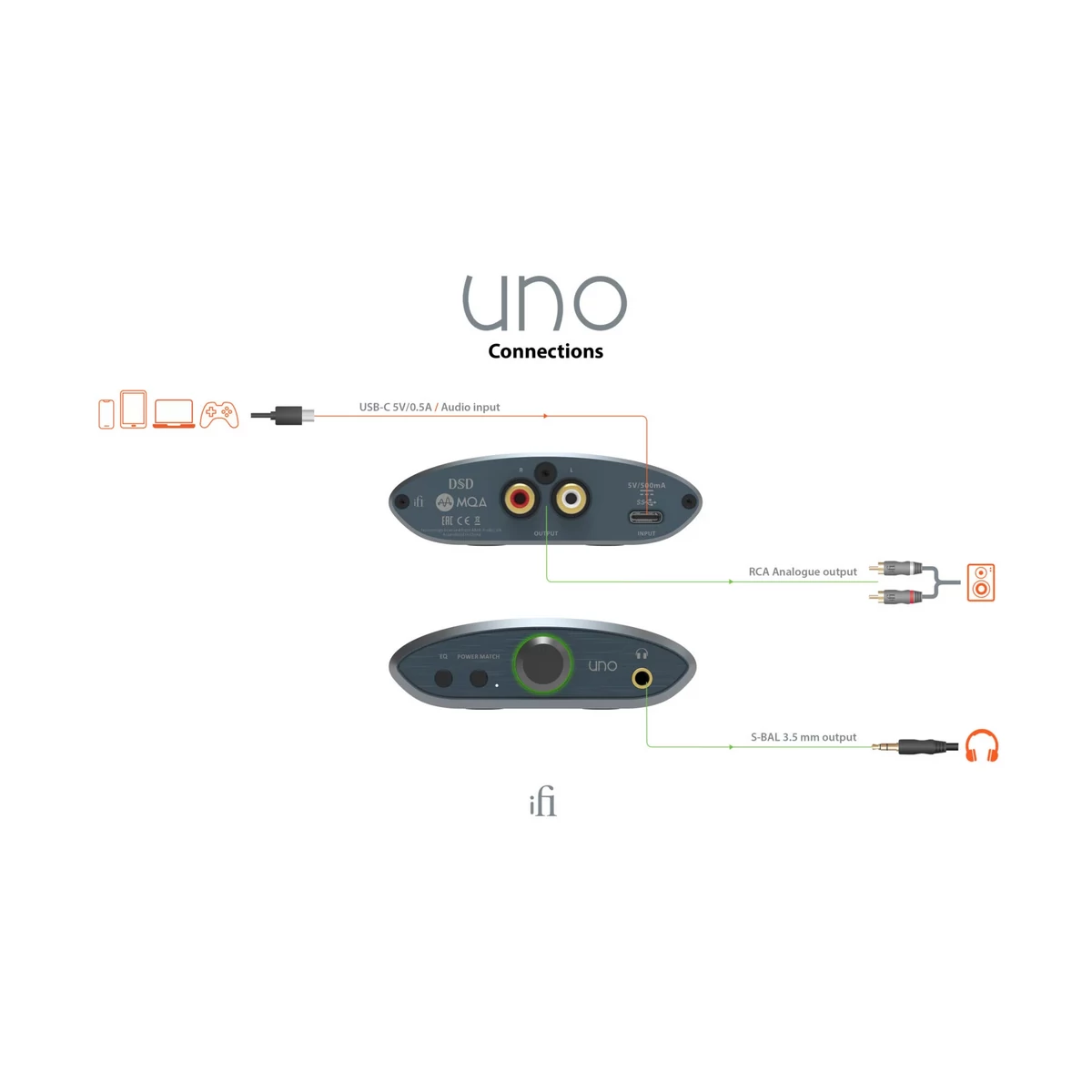 Állítható analóg erősítésDRE (Dynamic Range Enhancement) plusz technológiával a THD (Total Harmonic Distortion) és az áthallás minimalizálása érdekében, valamint az előlapi gombokon keresztül számos digitális szűrő érhető el, amelyek lehetővé teszik az iFi Uno hangjának ízlésének megfelelő finomhangolását .