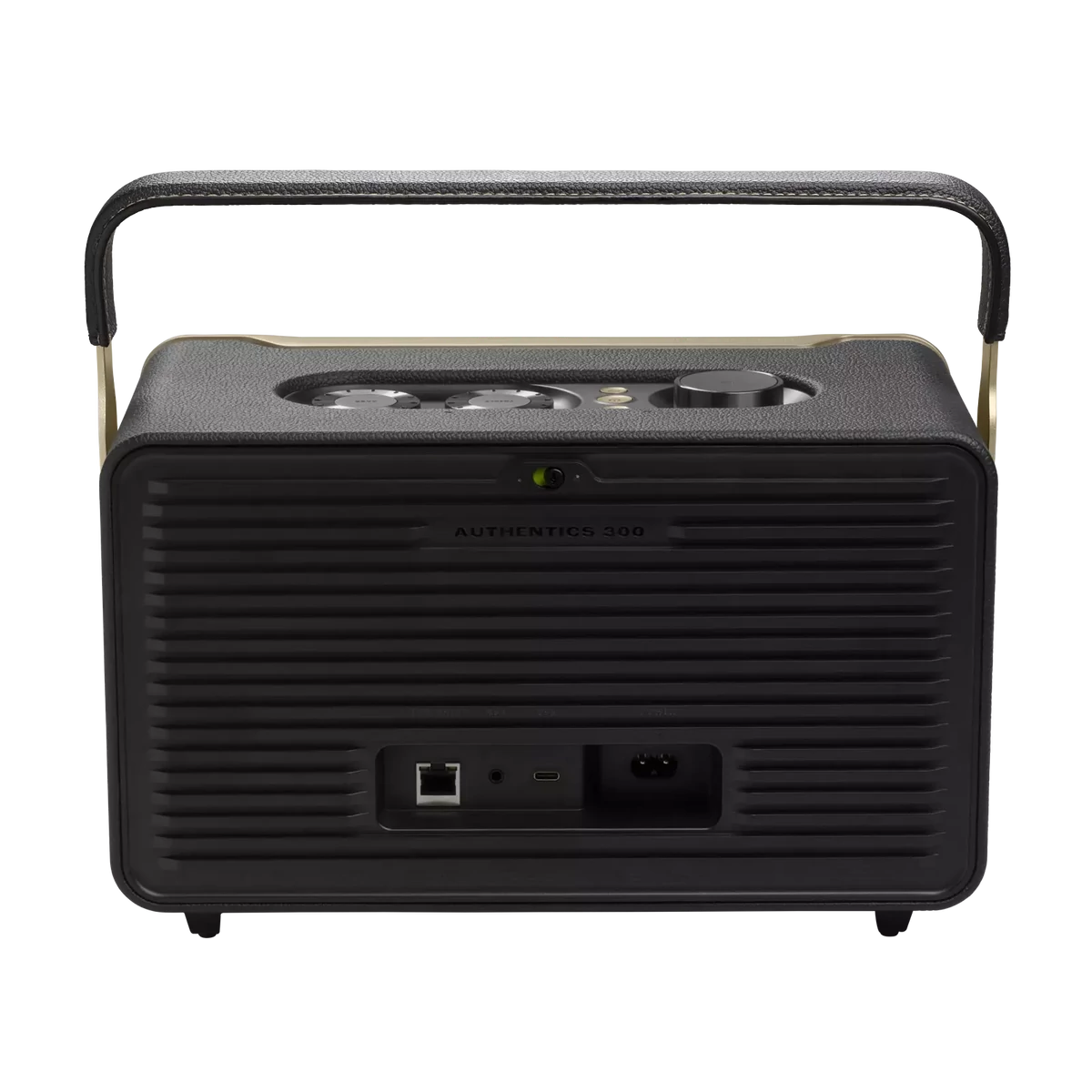 A JBL Authentics 300-at a klasszikus JBL örökség dizájn ihlette, hogy olyan megjelenést kapjon, amely bármely helyiséghez illeszkedjen, és bármilyen teret – kicsit vagy nagyot – kiváló JBL hangzással töltsön meg. A hangszóró prémium alumínium váza, egyedi bőrhatású burkolata és újragondolt Quadrex hűtőrácsa pedig valóban azt a gondos tervezést szemlélteti, amelyet a vizuális részletekre fordítottunk, egészen a lefelé irányított passzív radiátort körülvevő JBL jellegzetes mintájáig.