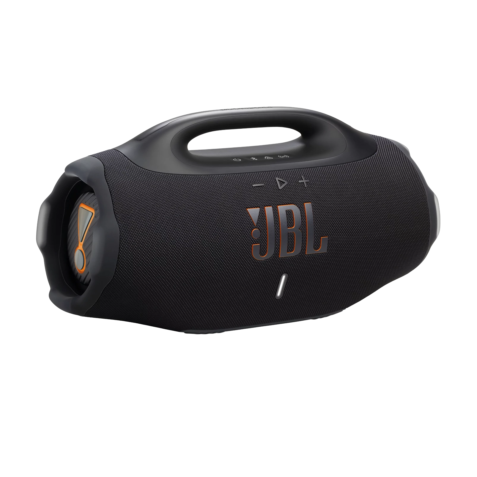 Az újratervezett JBL Boombox 4 két nagyobb mélynyomóval, két magassugárzóval és három passzív radiátorral rendelkezik, így minden zene erőteljesebben üt és tisztábban szól. Az AI Sound Boost segítségével pedig a kisujjunkat sem kell mozdítanunk – ez az intelligens technológia valós időben elemzi a zenénket, és úgy állítja be a hangot, hogy nagyobb erőt és kevesebb torzítást biztosítson, még akkor is, ha teljesen feltekerjük a hangerőt.