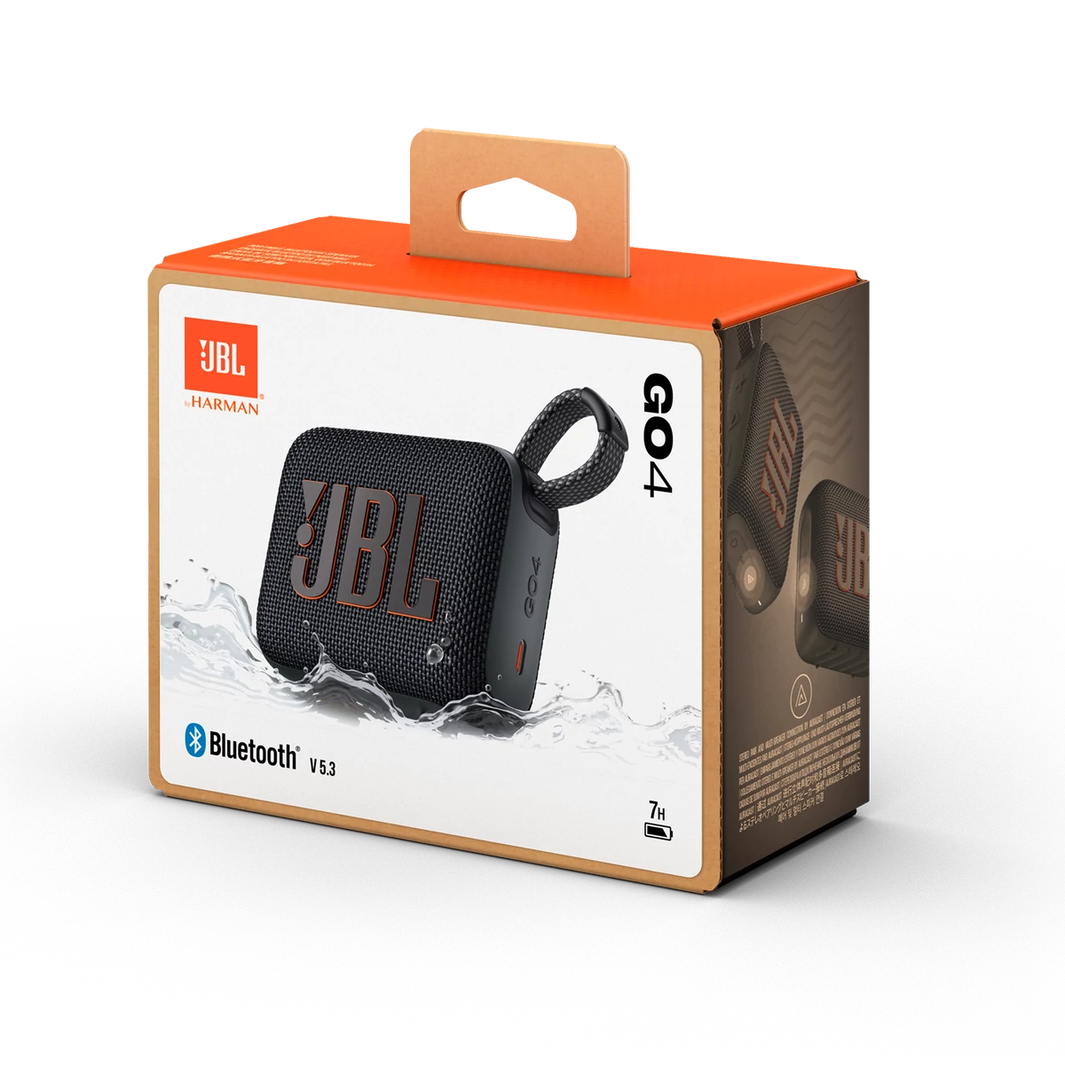 A JBL Go 4 újrahasznosított műanyagot és szövetet tartalmaz. FSC-tanúsítvánnyal rendelkező, szójafestékkel nyomtatott papírba csomagolva.