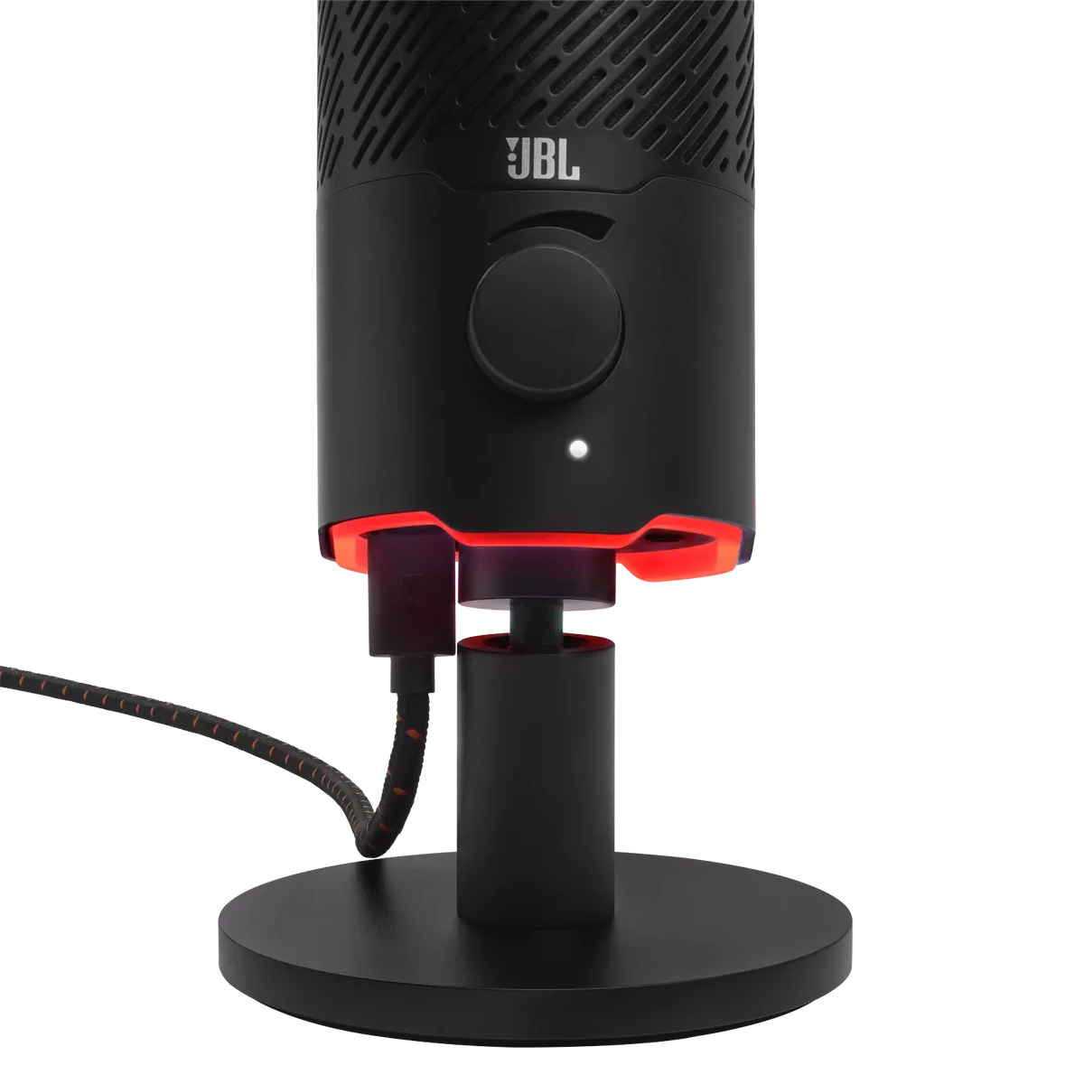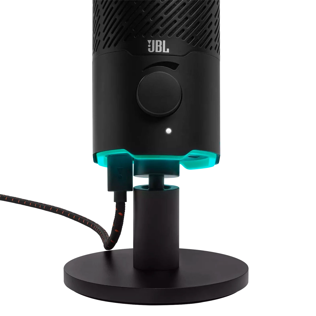 A stílusos és robusztus JBL Quantum Stream alumínium állvánnyal, fémgyűrűvel és vashálóval a prémium megjelenés és a használat közbeni fokozott stabilitás érdekében.