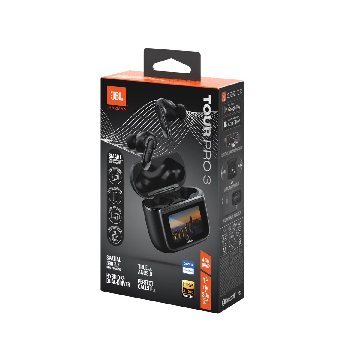 A JBL Tour Pro 3 két fülhallgatóval rendelkezik. A kiegyensúlyozott armatúra meghajtó varázslatos tisztasággal kezeli a magas hangokat, míg a 11 mm-es dinamikus meghajtó tiszta, erőteljes basszust és élénk, élethű énekhangot biztosít. A Hi-Res tanúsítvánnyal rendelkező hangot vezeték nélkül is továbbítják az LDAC-val, az Android natív, 24 bites, nagy felbontású audiokodekjével, amely háromszor több adatot szállít, mint a Bluetooth a kivételes hangminőség érdekében.