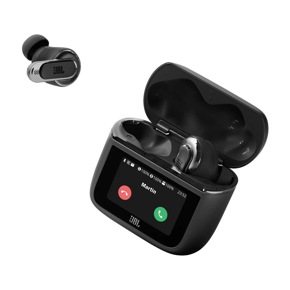 Hagyd a telefont a zsebedben. A JBL Tour Pro 3 újratervezett Smart Charging Case™ rendszere rendelkezik minden olyan funkcióval, amelyre szükséged van a hallgatási élmény és a fülhallgató-beállítások teljes körű vezérléséhez és testreszabásához több nyelven. Használd a nagyobb, tisztább, 1,57 hüvelykes érintőképernyőt, hogy megnézd, melyik dal szól, vagy ki hív, vagy szabd személyre a képernyőt kedvenc fényképeiddel. A dinamikus zárolási képernyőn tájékozódhatsz az akkumulátor állapotáról, az időről, az üzenetekről is.