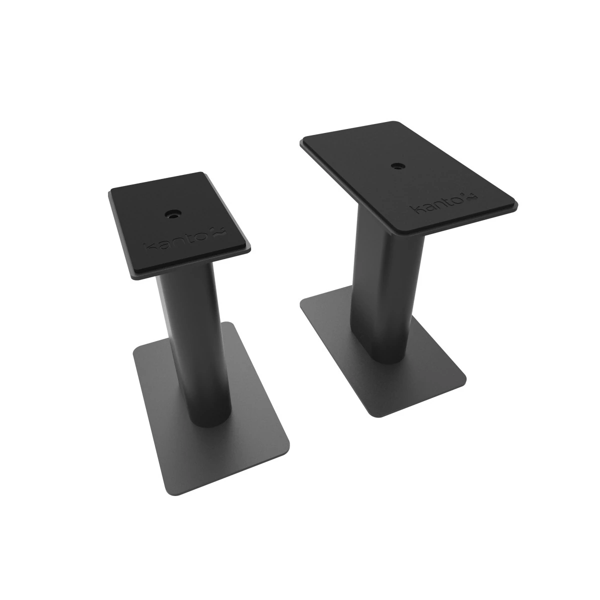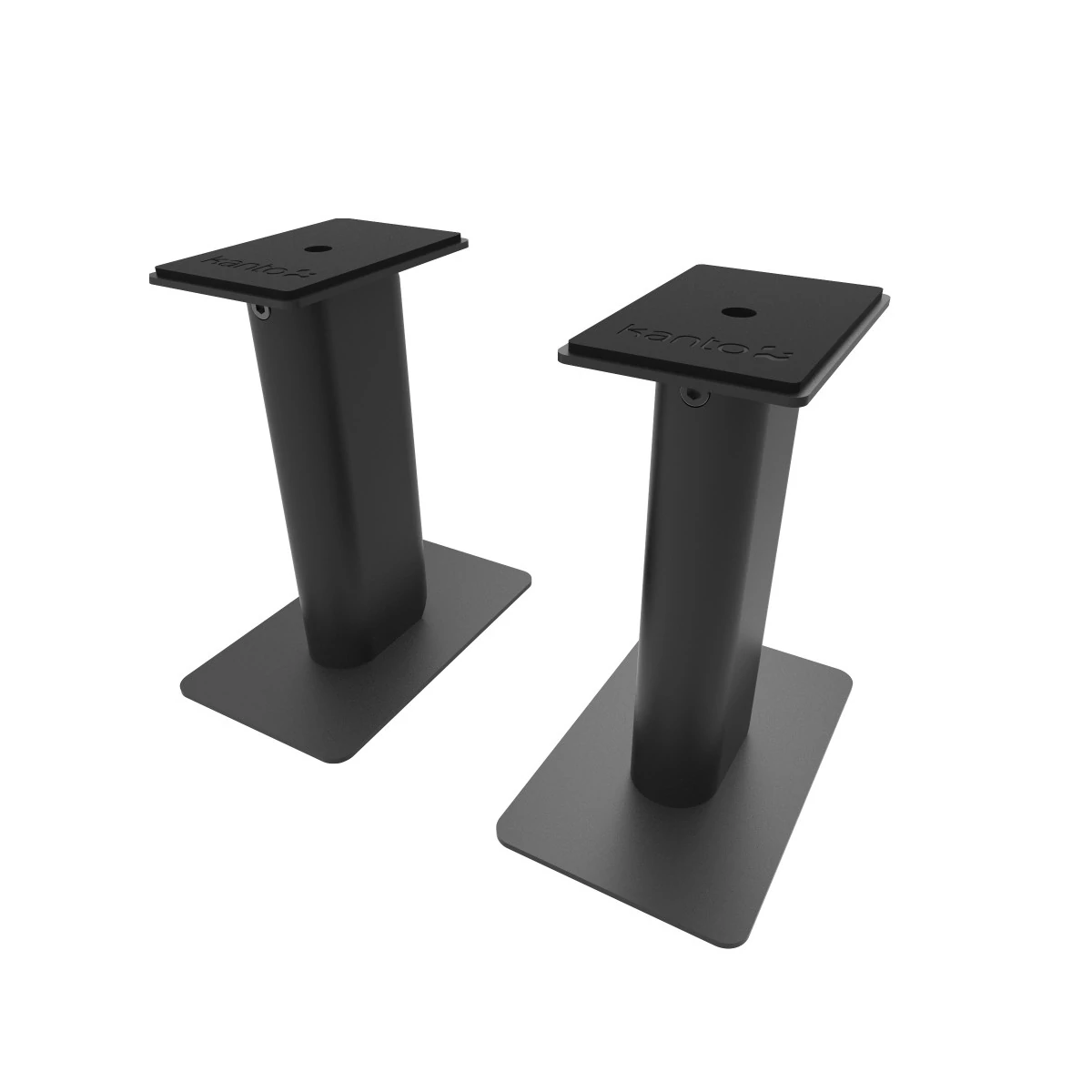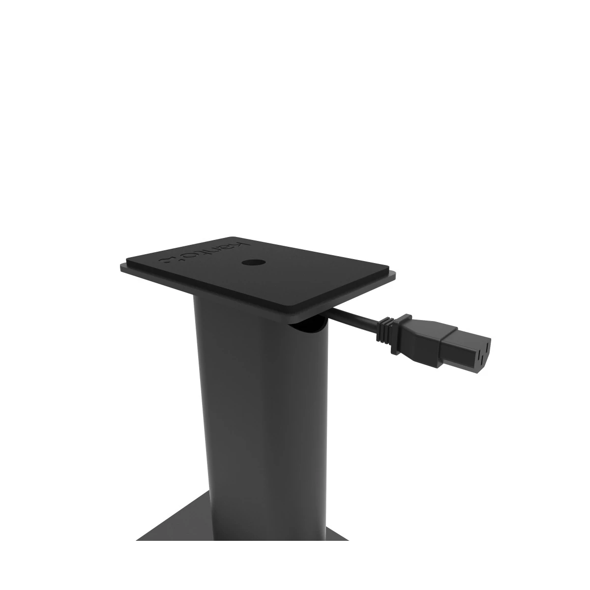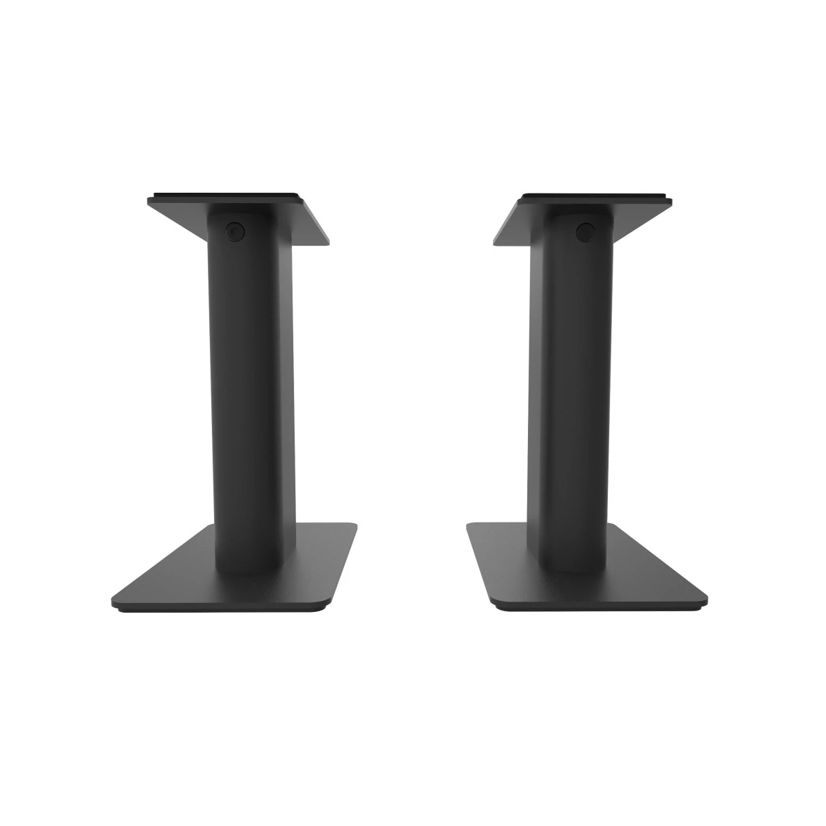 Az SP9 állvánnyal fülmagasságba emelheted asztali hangfalaidat. A nehéz acél szerkezet és a zártcellás hab felületű talpak és hangfaltálcák csökkentik a nemkívánatos rezonanciákat. Hangfaltálcák 30°ban elforgathatóak, hogy a hangszórókat jobban magad felé irányíthasd, miközben az asztalon a talpak párhuzamosak maradnak, jobban illeszkedve az íróasztlonhelyet foglaló egyéb tárgyak helyigényéhez. A hanszórótálcákat a gyártó csavaros hangfalrögzítéshez is előkészítette, hogy még stabilabban rögzíthesd kedvenc hangfalaidat. A lábak belsejében pedig kábelvezető csatorna van, a nagyobb rend érdekében.