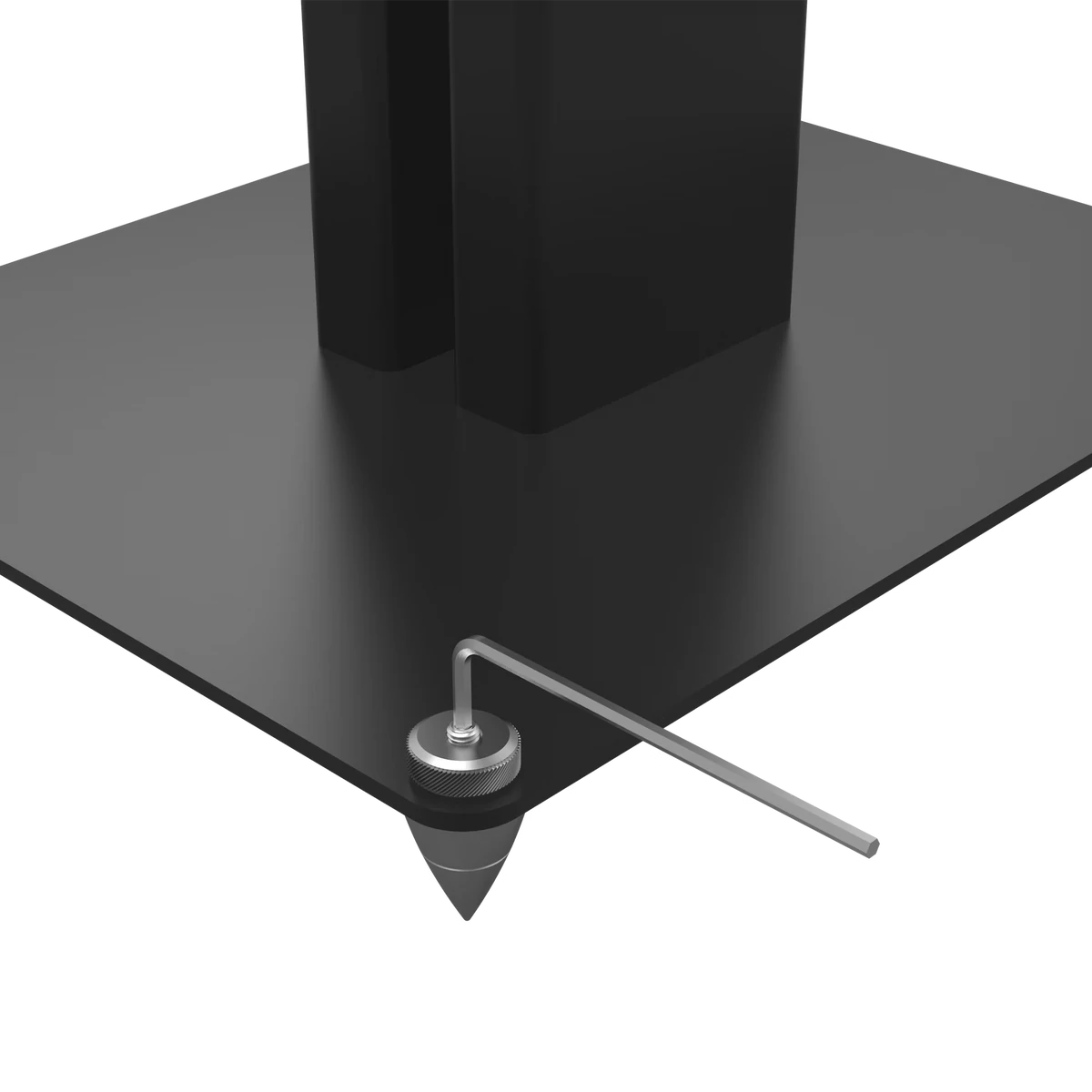 A háromszög alakú gumilábak biztonságosan állnak a szőnyegen, vagy egyszerűen lekerekített hegyekre cserélhetők, így karcmentesen helyezhetők el kemény felületeken. Még egy szintező eszközt is adunk hozzá, hogy hangszóróid tökéletesen illeszkedjenek minden helyiségbe.