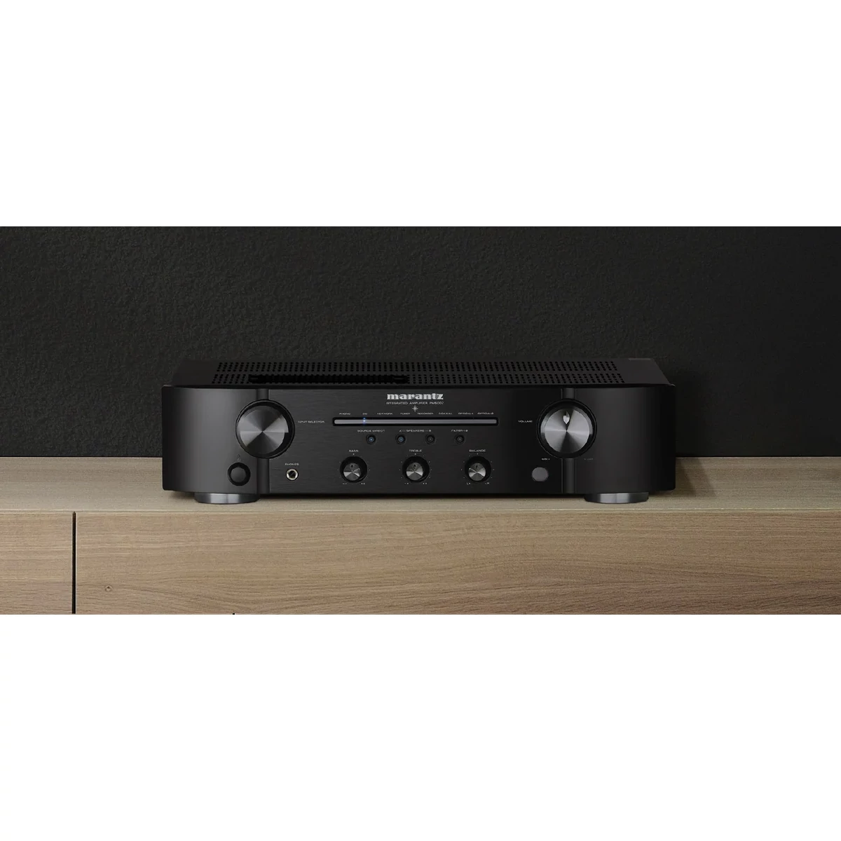 A PM6007 a Marantz legzeneibb hangzását nyújtja és ideális választás azok számára, akik készen állnak a 2-csatornás Hi-Fi rendszerük következő szintre lépésére. Toroid transzformátorral és testreszabott blokk kondenzátorokkal működtetett PM6007 integrált erősítő csatornánként 45 watt (8 ohm, 20Hz-20kHz) teljesítményt nyújt. Könnyen csatlakoztathatsz analóg és digitális forrásokat, vagy csatlakoztas a lemezjátszót a beépített phono előerősítőhöz. Hallgasd kedvenc Hi-Res audio zenéidet a 192 kHz/24 bites D/A konverteren keresztül és élvezd a mélyhangokat a mélynyomó kimeneti opcióval.