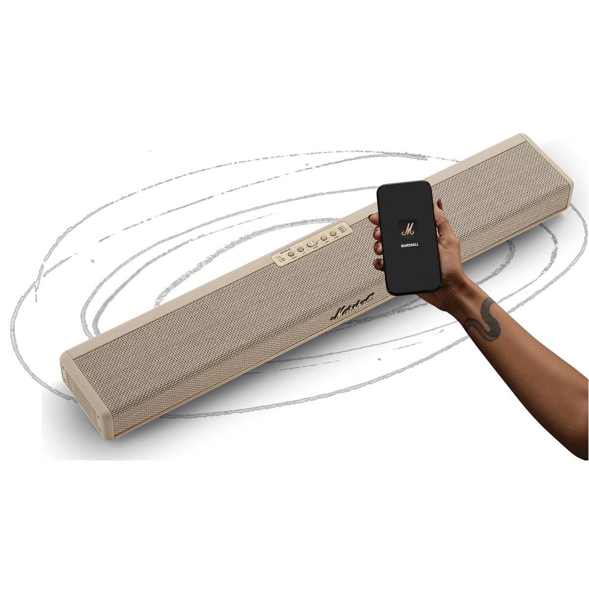- Vezérlés: Az egység tetején található fizikai vezérlőgombokkal, vagy a dedikált Marshall mobilalkalmazással vezérelhető, amely EQ beállításokat és szobakalibrációt is lehetővé tesz.