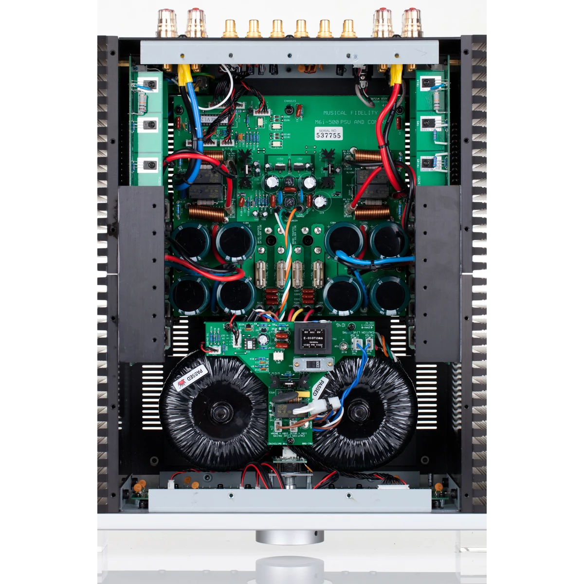 Az M6si500 kiváló minőségű fémvázzal rendelkezik, amely tartalmazza a jellegzetes stílust és a szilárd teljesítményű platformot. Az előlap egy egyedi, finom, extrudált alumíniumból, míg a hűtőbordák egyedi tervezéssel készülnek. Az M6si500-at valódi kettős mono kivitellel terveztük. Minden erősítő szakasznak megvan a maga hűtőbordája és különálló transzformátora, míg az előerősítőnek saját tápellátási tekercse van. Az öt bemeneti aljzat belső vezeték nélküli kapcsolat helyett közvetlenül az előerősítő áramköri lapjához van csatlakoztatva. Ez a rendkívül rövid jelút rendkívül alacsony impedanciát biztosít az M6si500-be történő azonnali forrásból történő táplálásból.