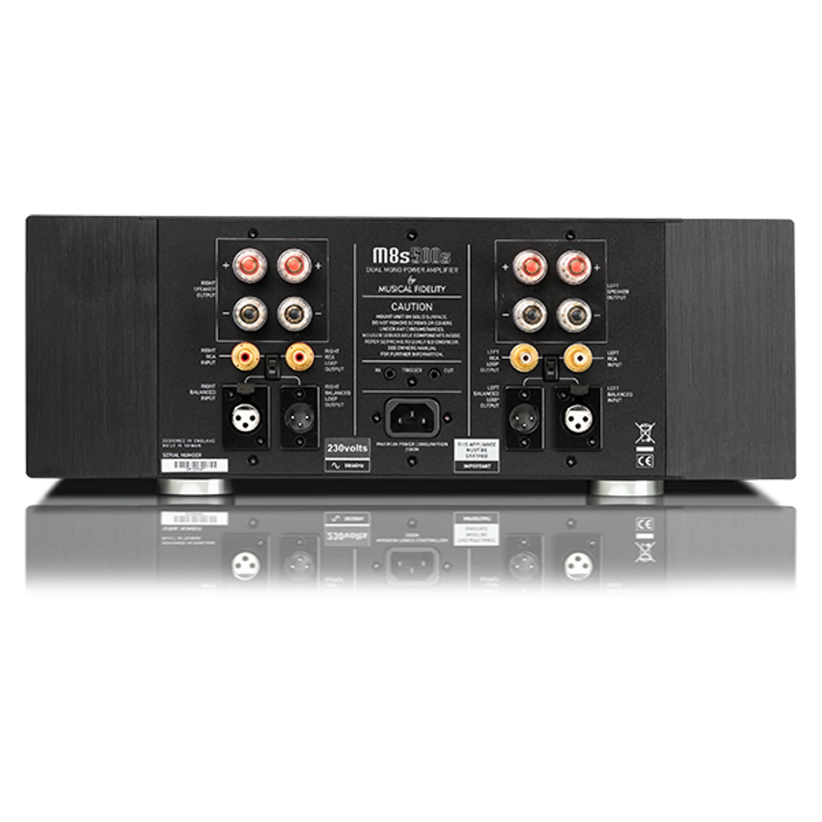 Az M8s-500s egy teljesen kiegyensúlyozott sztereó erősítő, amely 500W teljesítményt ad le, ami majdnem megduplázódik 4 ohm esetén. Az M8s-500s-t nagyon alacsony torzításra tervezték, általában 0,001%-nál kevesebb 1 kz-nél és 0,005% alatt 20 kHz-en. Még a nevetséges 50 kHz-es torzítás mellett is csupán 0,02%, ami 0,06% körülire kúszik fel a még ésszerűtlenebb 100 kHz-es torzításnál. Ezek olyan frekvenciák mérései lehetnek, amelyekkel soha nem találkoztak a való világban, de egy pontot bizonyítanak; hogy az M8s-500-asok lényegesen kevesebb torzítást okoznak, mint a rivális konstrukciók.