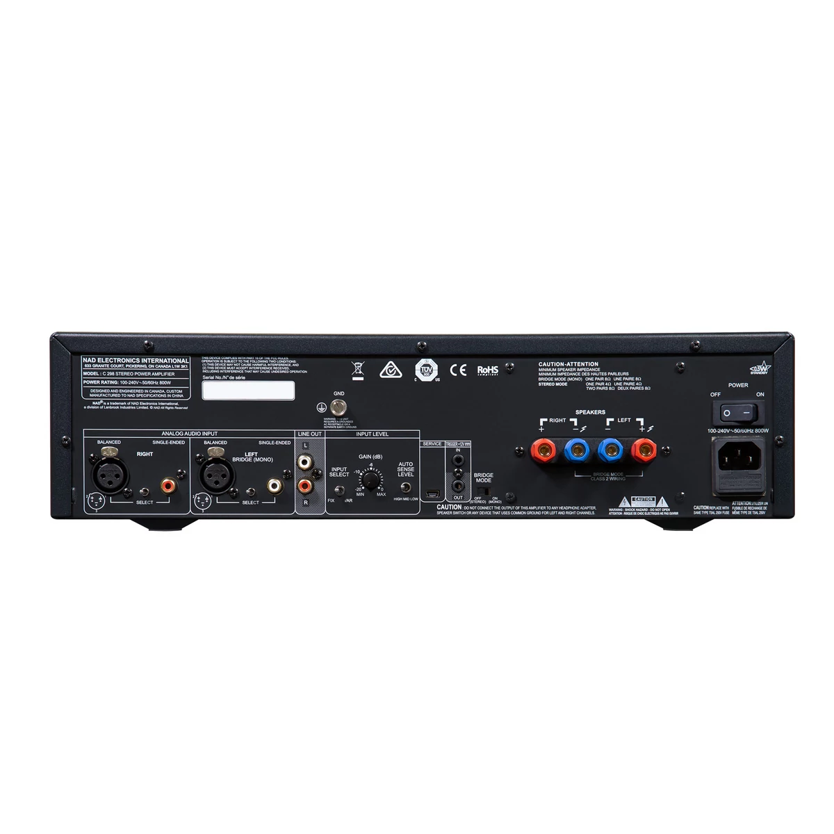 A választható küszöbértékkel rendelkező Auto-sense tökéletes az összetett rendszerek automatizálásához vagy az erősítő szekrényben való elrejtéséhez. Tartalmazunk még egy Ground Lug-ot is, amely nagyon hasznos lehet a földhurkok és a zaj kiküszöbölésére összetett, több egységből álló rendszerekben. Mindehhez a csatlakoztathatósághoz hozzáadódik egy Bridge Switch, amely a C 298-at elképesztően erős monoblokk erősítővé változtatja.
