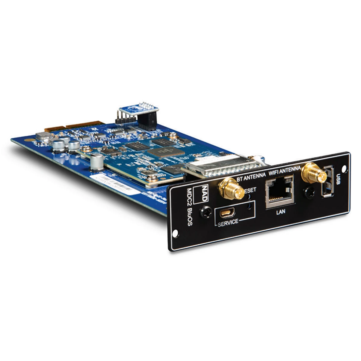 Az MDC2 BluOS-D modul a legújabb Wi-Fi és Ethernet protokollokat, valamint a kétirányú Qualcomm aptX HD Bluetooth-t tartalmazza. Támogatja az Apple AirPlay 2-t, a Siri hangvezérlést, a Spotify Connect-et és a Tidal Connect-et. A hallgatók a személyes könyvtáraikból is lejátszhatnak zenét, amelyet az MDC2 BluOS-D modul USB-portjához csatlakoztatott külső meghajtón tárolnak.
