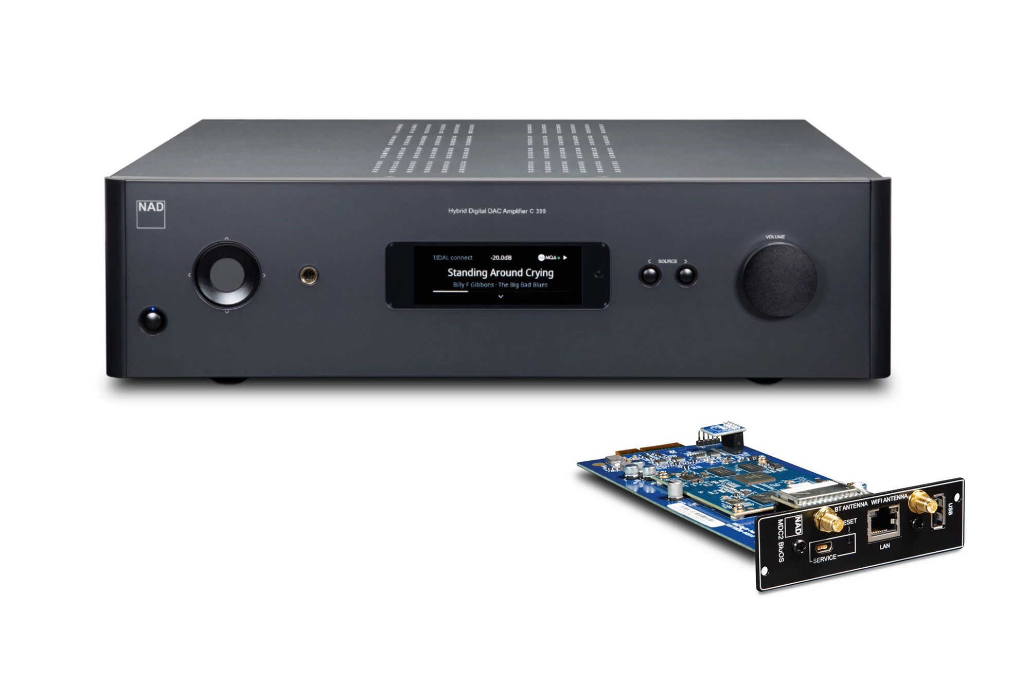 A NAD első MDC2-kompatibilis komponense a C 399 HybridDigital DAC-erősítőhöz készült. Az első MDC2 modulunk az MDC2 BluOS-D, amely Dirac Live room korrekciót és BluOS multi-room zenei streaminget ad a C 399-hez, valamint a jövőbeni MDC2-kompatibilis komponensekhez.
