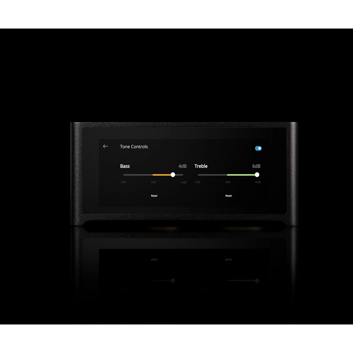 Az M10 V2 működtetésének számos módja van. Használhatod a BluOS alkalmazást egy okostelefonon, tableten vagy számítógépen, hogy zenét hallgathass kedvenc streaming szolgáltatásodból. Válassz ki néhány dalt a számítógépeden vagy telefonodon található Spotify vagy Tidal alkalmazásból, majd kapcsold át a lejátszást az M10 V2-re. Zene streamelése az M10 V2 készülékre iPhone, iPad vagy iTunes könyvtárból az AirPlay 2 segítségével. Válassz zenét a hangod segítségével az Amazon Alexa, az Apple Siri vagy a Google Assistant hangprotokoll használatával. Az M10 V2 Roon Ready, így zenét streamelhetsz Roon Core szerverről. Az M10 V2 integrálható az Apple, a Control4, a Crestron, a Lutron és más okosotthn automatizálási rendszerekbe, így vezérelheted a zenelejátszást, valamint más otthoni rendszereket, például a világítást, az árnyékolást. Használd a mellékelt távirányítót a hangerő beállításához, a számok átugrásához és aktiváld az előre beállított parancsokat, vagy válassz műsorszámokat, forrásokat, és állítsd be a hangerőt az M10 V2 érintőképernyőjén.