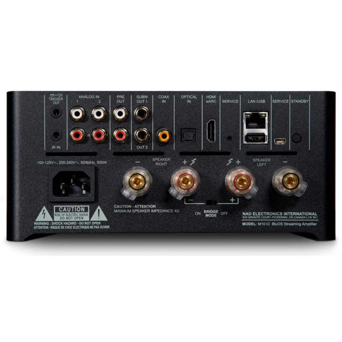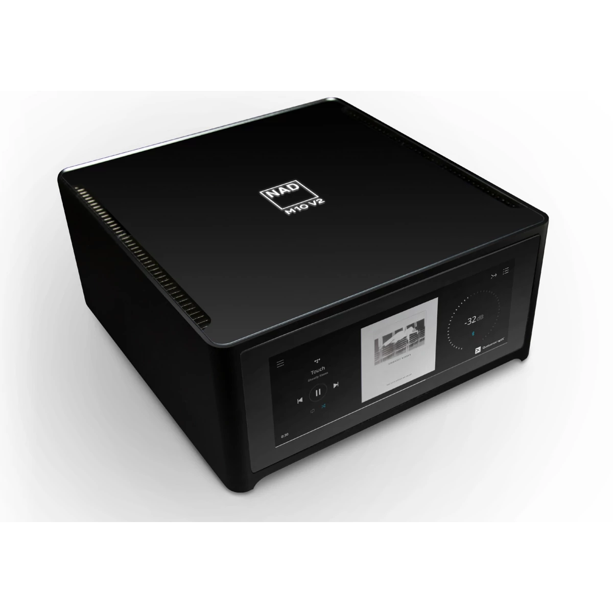 A NAD M10 V2 BluOS Streaming erősítő egy kifinomult zenei streamer és a nagy teljesítményű, 100 watt / csatorna erősítő egyetlen stílusos komponensben egyesül. Az M10 V2 az elismert BluOS multiroom platformra épül, amely integrált támogatást nyújt több tucat streaming szolgáltatáshoz. Az M10 V2 továbbfejlesztette díjnyertes elődjét a távirányító, a frissített erősítési algoritmusok és a Dolby Digital surround hangzás egyszerű hozzáadásával.