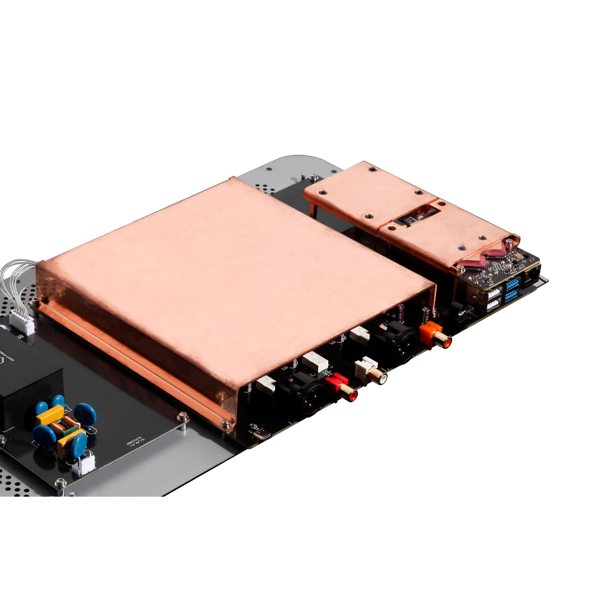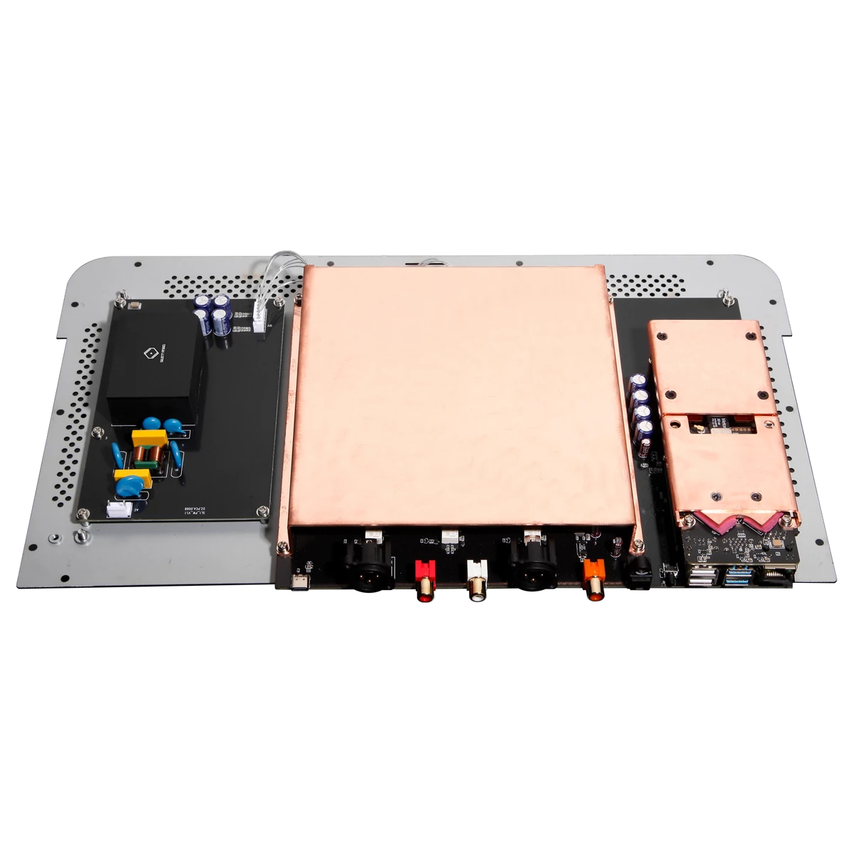 A dedikált DAC-alaplap egy alumíniumházban kapott helyet, hogy minimalizálja az áramellátás és a digitális áramköri modulok interferenciáját. Ez a kialakítás hatékonyan különíti el az analóg és digitális áramköröket, így biztosítja a tisztább és pontosabb hangzást.