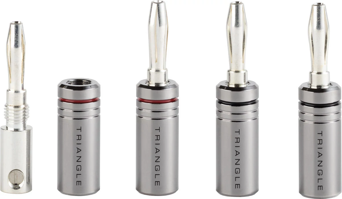 A Triangle BP400 banándugók könnyen összeszerelhetőséggel (kettős rögzítés kábelcsavarral) és magas vezetőképességgel rendelkezik. A dugók speciális kezeléssel (ezüstözött bevonattal) rendelkeznek, ami minimalizálja a torzítást. Az eloxált alumínium kapszulák kiváló jelvédelmet biztosítanak. Ezek az új BP400-asok akár 3,8 mm-es kábeleket is fogadnak.