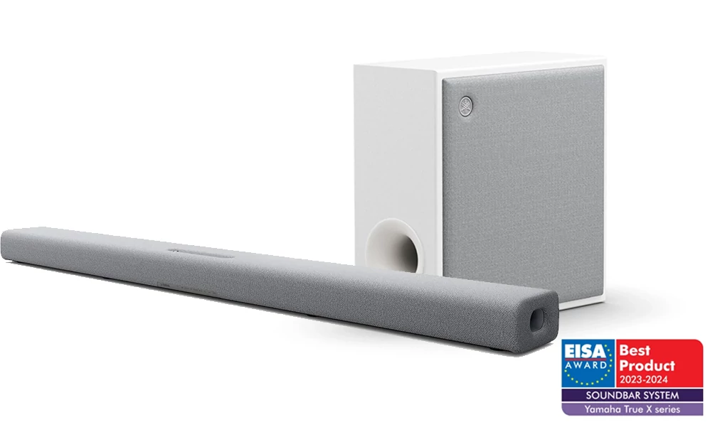 "A Yamaha True X lenyűgözően rugalmas házimozi rendszer, amely az SR-X40A hangprojektor, az SW-X100A mélynyomó és a WS-X1A surround hangszórók kombinációja. Az egyes elemek vezeték nélkül csatlakoznak egymáshoz, ezáltal a rendszer elegáns, hiteles 3D hangélményt nyújt. Legyen szó Atmos filmzenékből vagy játékokból összeállított hanganyagról, akár zenelejátszásról, a teljesítmény mindig energikus és magával ragadó, részletgazdag és precízen hangolt. A szövetburkolat divatos, a rendszer távirányítóval, alkalmazással vagy a beépített Alexa mikrofonon keresztül hanggal is vezérelhető. Van még egy trükk a tarsolyban – mindkét hátsó hangsugárzó képes szólóban, hordozható (és vízálló) Bluetooth hangszóróként működni. A Yamaha számára az X valóban a legjobbat jelenti." - EISA